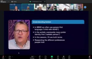 The session, “Safer Educational Visits for Autistic Children”, brought together expertise from Andrew Hall and Evolve advice, Outdoor Education Advisor, Mick Bradshaw, Education Safeguarding Manager, Hayley Cameron, along with Advisory Teacher for Autism, Alex Silk. By combining safeguarding knowledge, specialist teacher knowledge and training videos that contained lived experience of being autistic, together we were able to offer Educational Visit Coordinators across Sutton practical strategies for risk assessments that keep neurodivergence front of mind.