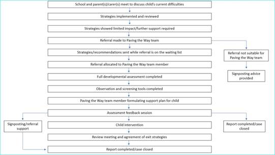 Once a referral is submitted, it may be reviewed by a panel to determine whether Paving the Way is the most appropriate service to meet the child’s individual needs. If not, the panel may signpost to a more suitable service as well as strategies provided.
