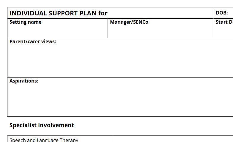 Please complete this form if you have individual children who you have listed on your cohort plan under Specialist level of need. You can find guidance on completing this form on the link below