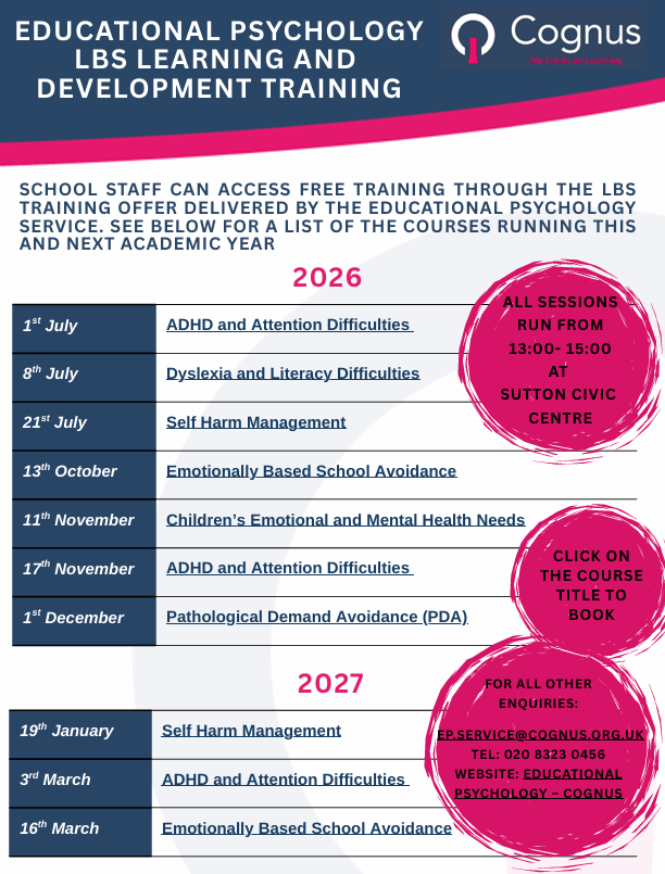 Fully funded training for school staff through the LBS training offer, delivered by the Educational Psychology Service.
