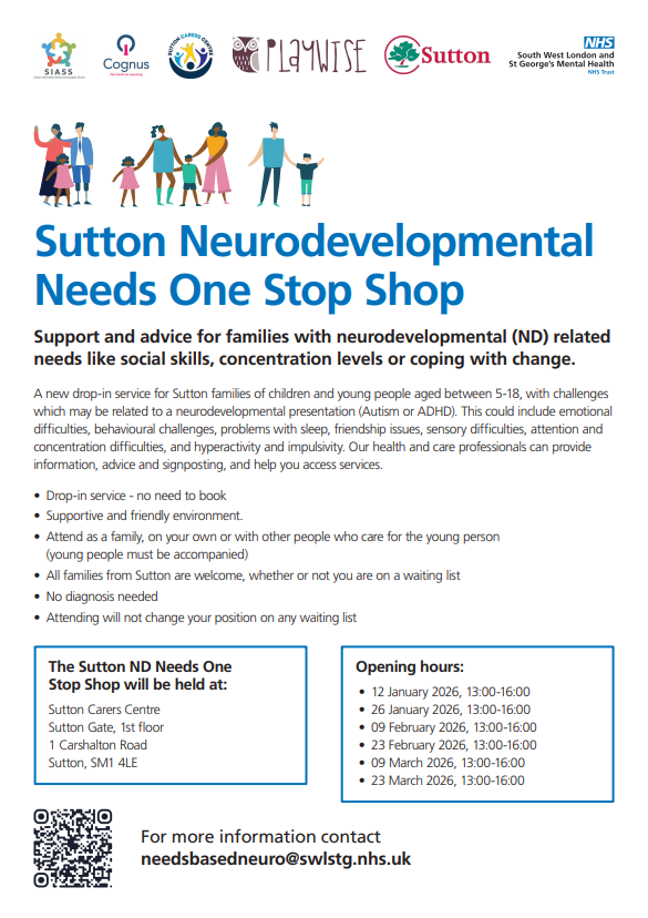 We aim to run these on a termly basis, so please keep looking at our social media channels to sign up to future events (Twitter: @cognus_autism, Facebook: ‘Sutton Autism Service’). If you are a parent or carer on a waiting list for assessment, we will be running a workshop for parents and carers awaiting an assessment after Christmas.